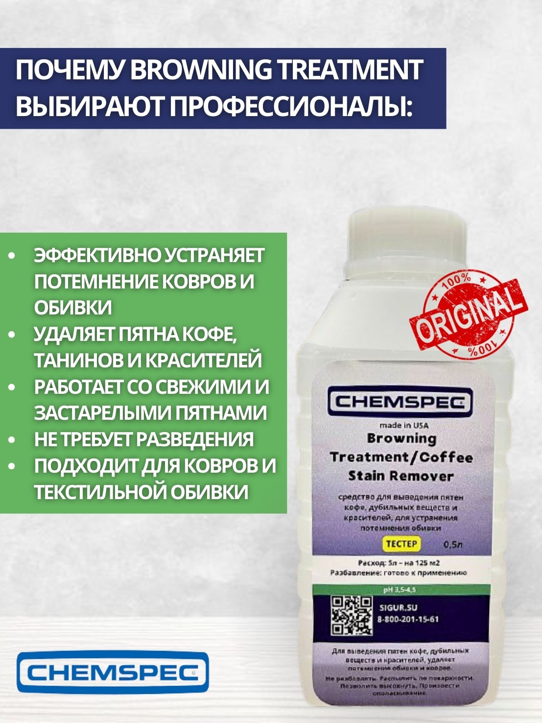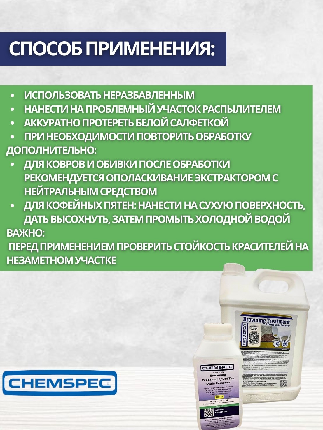 Chemspec: Browning Treatment/Coffee Stain Remover 0,5л (фасовка) для устранения потемнения обивки