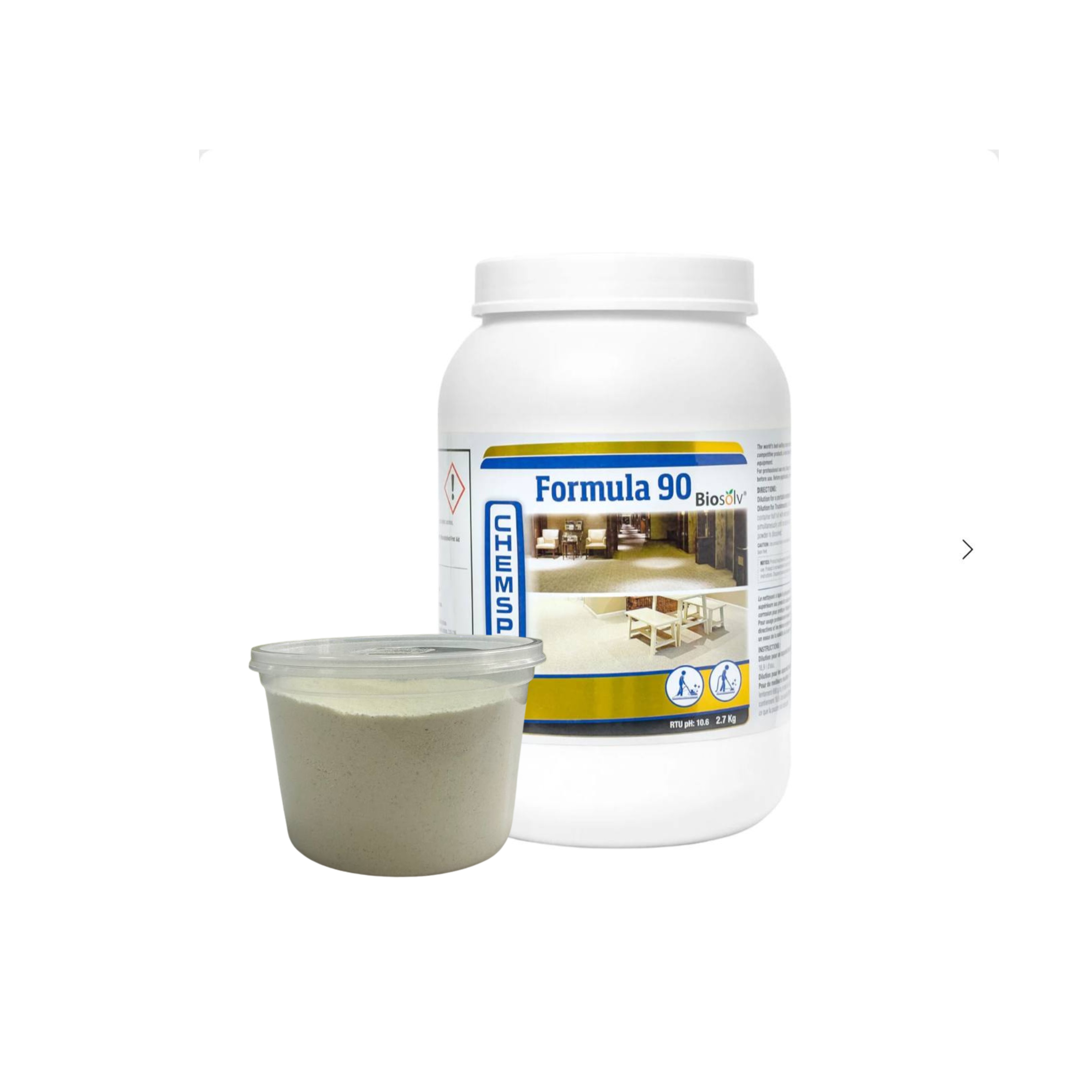Powdered Formula 90 – уникальное средство для чистки ковров и ковровых покрытий методом экстракции. Удаляет грязь по всей глубине ворса с синтетических и натуральных волокон. Не оказывает разрушающего воздействия на текстильные красители. Разрешено для применения на шерсти. Смачивает поверхность, проникая глубоко во все ее неровности и поры, освежает и усиливает цвет, замедляет последующее загрязнение. Может использоваться в поломоечных машинах и экстракторах. Легко разводится, содержит специальные агенты, защищающие оборудование.