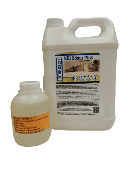 1. Смешайте одну часть Kill Odor Plus и 10 частей воды. Для особо загрязненных участков смешайте одну часть Kill Odor Plus и 4 части воды.