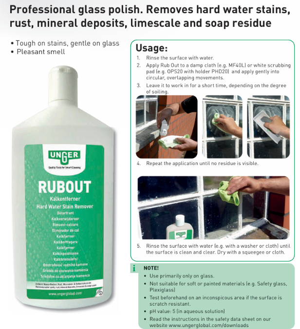 Unger: Паста для удаления стойких загрязнений со стекол 0,5л RUBOUT 20