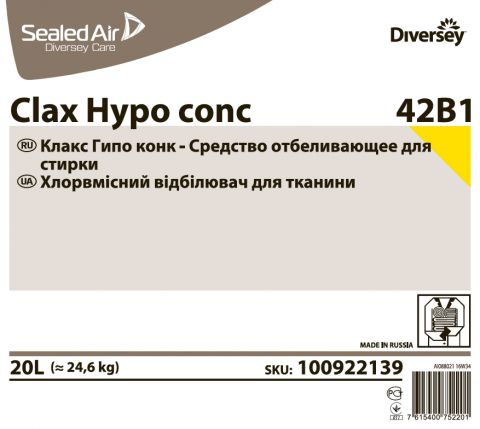 Diversey:Clax Hypo conc 42B1 20L/Ср-во отбеливающее для стирки, низкотемпературный отбеливатель 20л