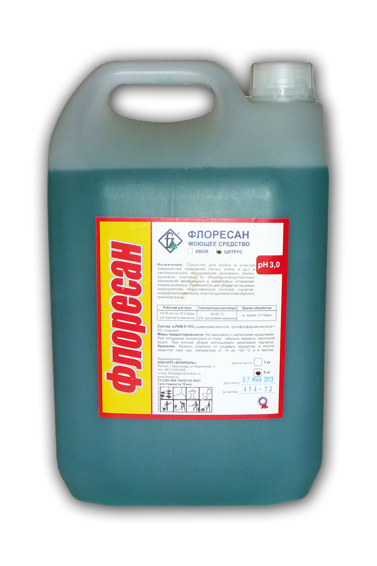 При применении «Флоресана» в поломоечных машинах использовать средство в концентрации 2-3% (20-30г на 10л воды).
