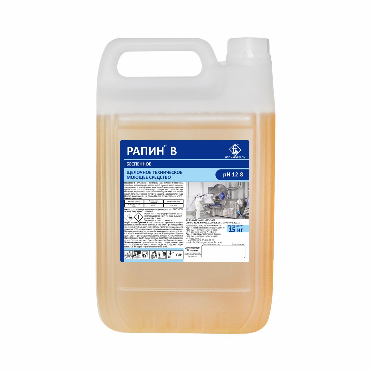 Флореаль: Рапин В (Щ) беспенный, спец. моющее средство для очистки оборуд. 7 кг