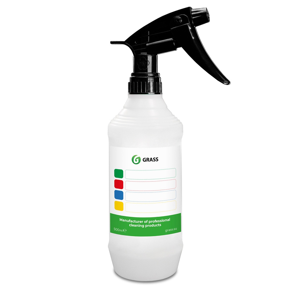 Универсальная бутылка с профессиональным триггером с цветной кодировкой. Бутылки с профессиональным триггером помогут не только в удобном разведении и применении концентрированных моющих средств, но и позволят разграничить сферу их применения благодаря цветной кодировке на этикетке: зеленый - уборка мест приготовления и приема пищи; красный - уборка санитарных зон; синий - уборка в офисах, коридорах, проходных зонах бизнес и торговых центров; желтый - уборка медицинских учреждений.