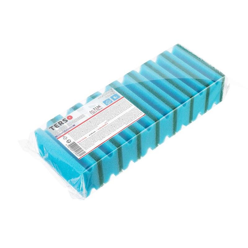 Губка для клининга с абразивом 130х70 (8шт) синий/зел.абразив