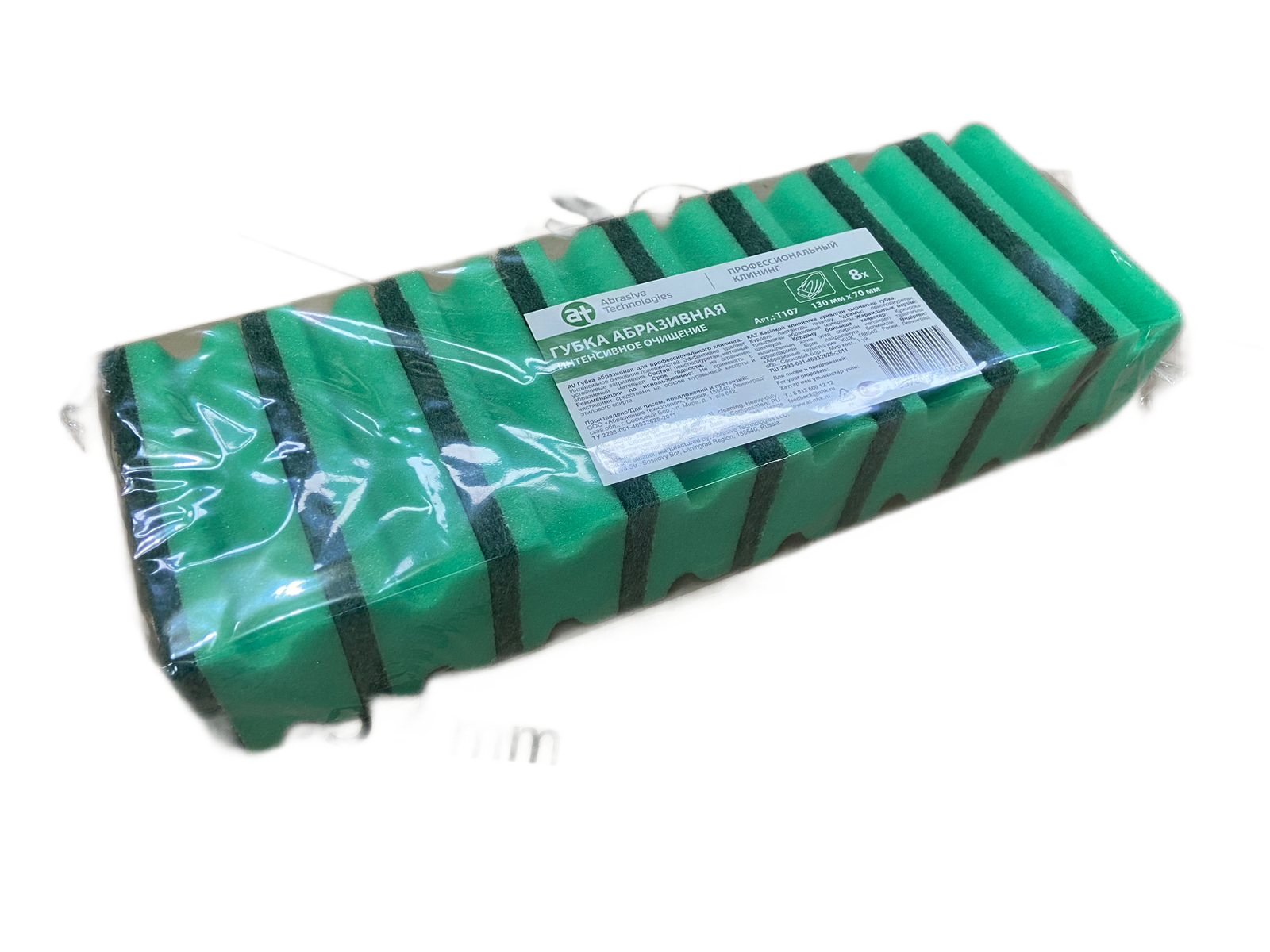 Губка для клининга с абразивом 130х70 (8шт) зеленый/зел.абразив