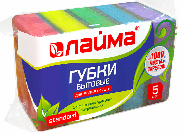 Губка для посуды "Лайма" 53х80х26мм, 5шт/пач, 110шт/уп.