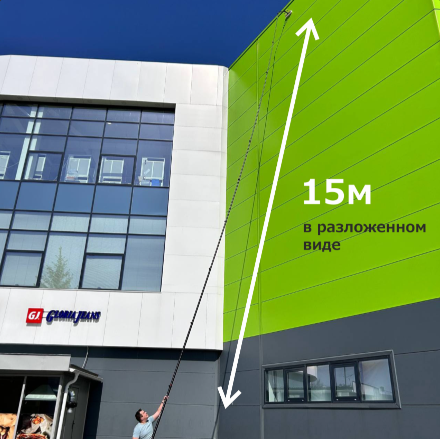 WFP мойка: Карбоновая телескопическая штанга 15 м. 30Т