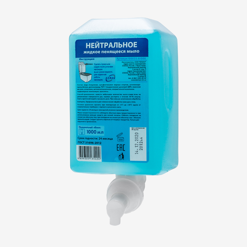 KEMAN: Нейтральное жидкое пенящееся мыло катридж 1000мл.(Aquarius) 100025-А1000/6шт.