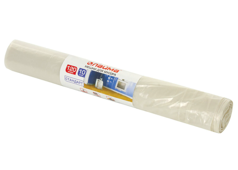 Изготовлены из полиэтилена высокого давления (ПВД) плотностью 25 микрон и имеют объем 120 литров. Размер мешка - 67х100 см (±5%). Поставляются в рулоне по 10 штук. Преимуществами данных мешков для мусора являются: устойчивость к разрыву, прочность, большой объем и грузоподъемность.