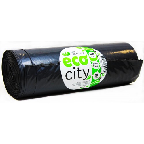 Мешки для мусора: 180л Eco City ПВД, черные, 50мкм, 115*90см, 25шт/рул, 12рул/уп