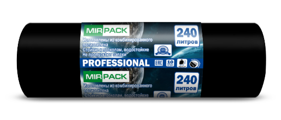 Мешки для мусора: 240л Professional ПВД, черные, 35мкм, 127*95см, 10шт/рул, 14рул/уп