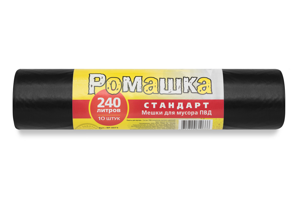 Мешки для мусора: 240л Ромашка Стандарт ПВД черн, 30мкм, 90*130см, 10шт/18рул уп., 648гр