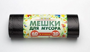 Мешки для мусора: 60л Ромашка ПНД, черные, 7мкм, 68*58см, 30шт/рул, 30рул/уп