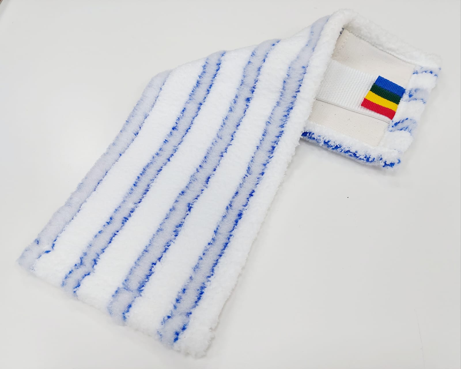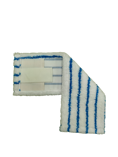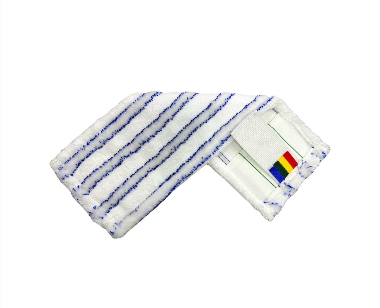 МОП плоский - микрофибра, белый, мягкий абразив, полоса синяя, 40см, карман