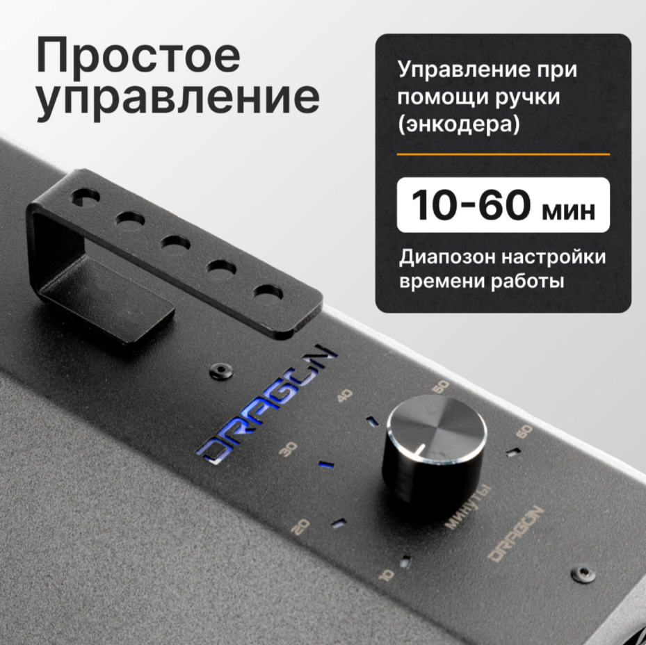 3. Безопасность: Таймер от 10 до 60 минут.