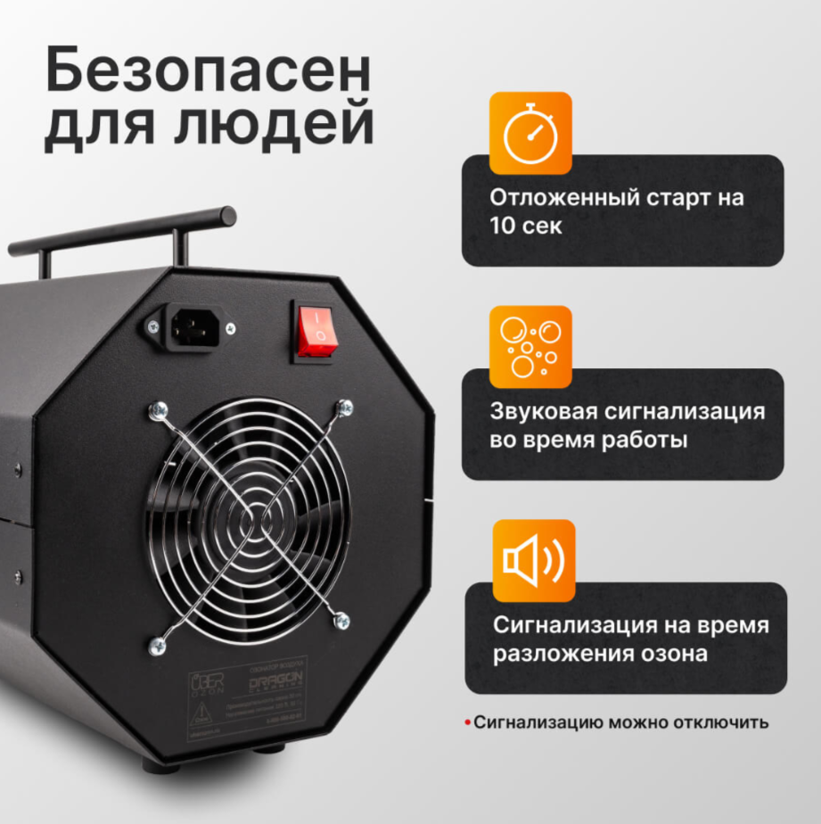 3. Отложенный старт: Озонатор предусматривает отложенный старт на 10 секунд, что обеспечивает безопасное включение устройства.