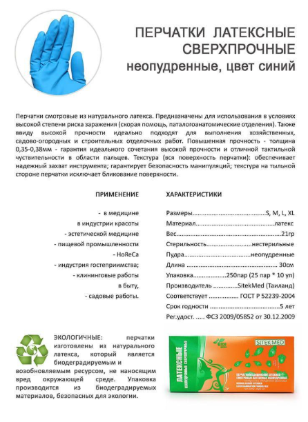 Перчатки SITEK MED синие М нестирильные латекс 25пар\пар