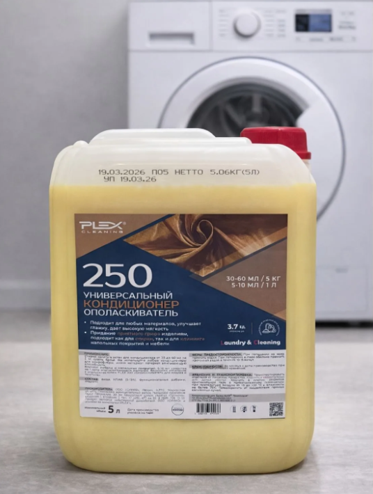 Специальный кондиционер- ополаскиватель для любого типа текстиля. Подходит для бытовой, профессиональной стирки, клининга напольных покрытий и мебели. Универсальный продукт для придания мягкости, приятного грифа.