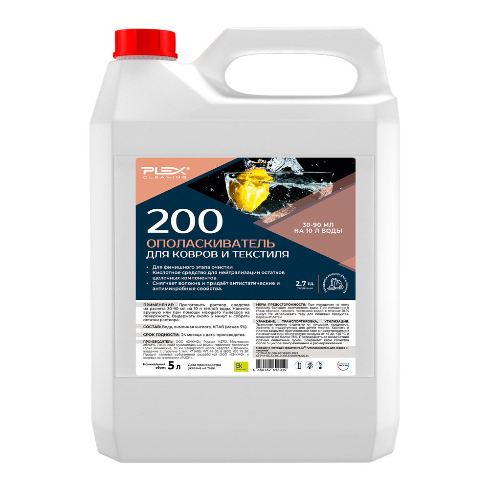 Кислотный ополаскиватель Plex 200 для ковров и текстиля 5л.