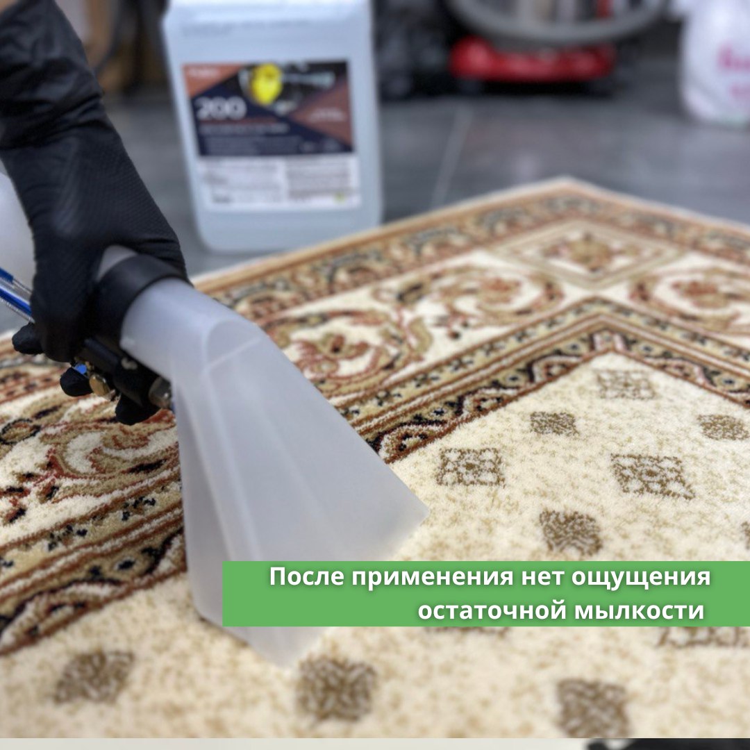 Приготовить раствор средства из расчета 30-90 мл. на 10 л. теплой воды. Нанести вручную или при помощи моющего пылесоса на поверхность. Выдержать около 3 минут и собрать остатки раствора.