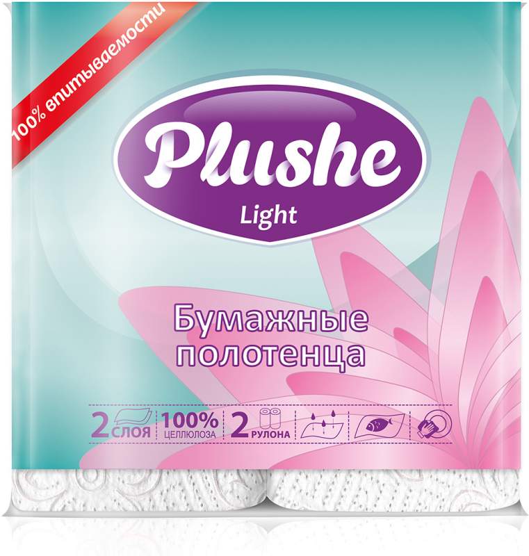 Полотенца бумажные Plushe Light, 2 рул.10м 2 слоя, белый, 12 в упак.