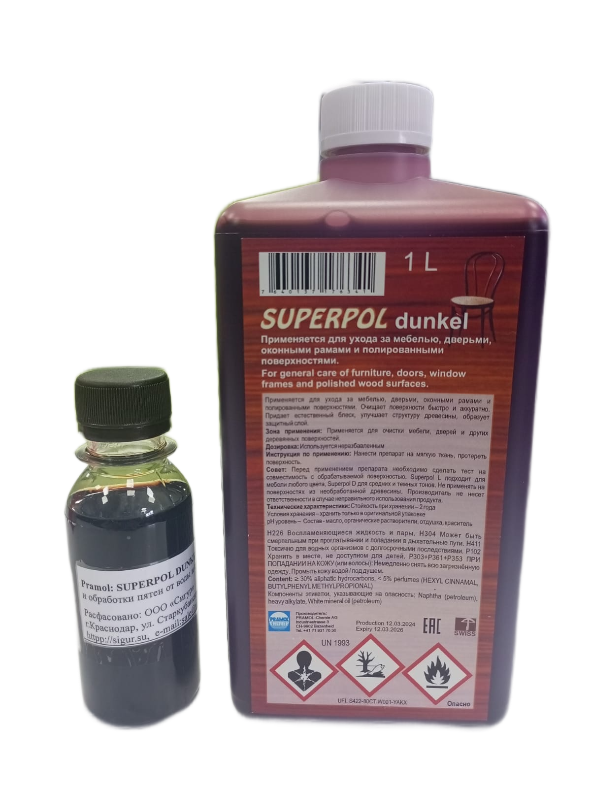 Pramol: SUPERPOL DUNKEL Для ухода за мебелью и обработки пятен от воды и спирта 100мл.фасовка
