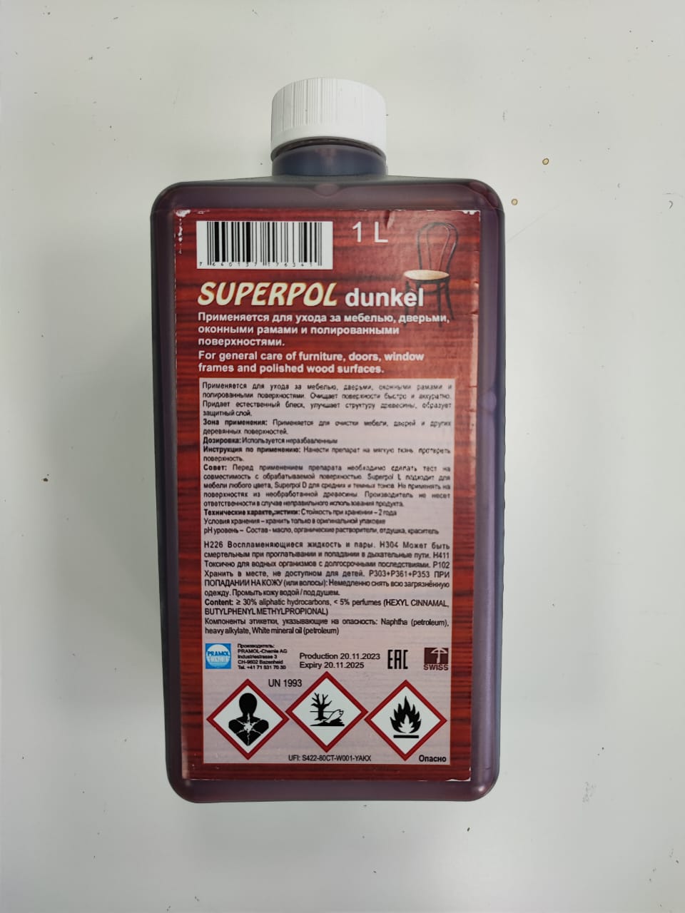 Pramol: SUPERPOL DUNKEL Для ухода за мебелью и обработки пятен от воды и спирта 1л.