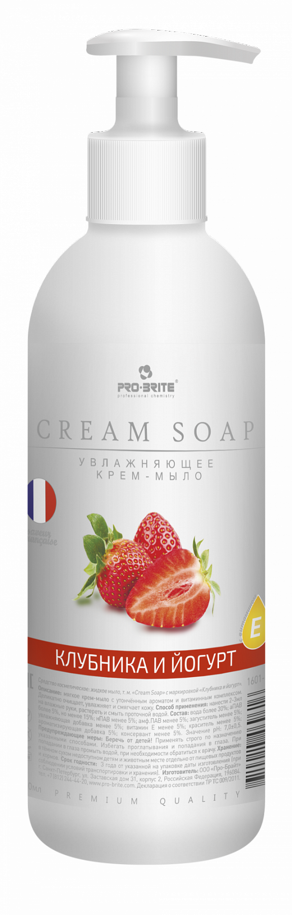 Pro-Brite: Crem Soap Клубника и йогурт (Premium) 0,5л/10шт Увлажняющее крем-мыло