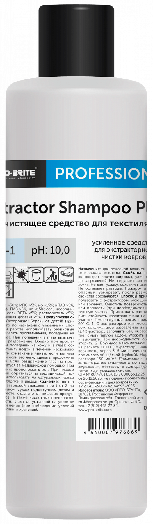 Pro-Brite: EXTRACTOR SHAMPOO PLUS (Экстрактор Шампунь ) 1л/10шт.уп. для чистки ковров