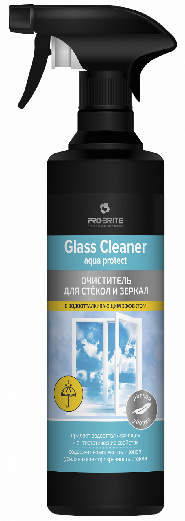 Pro-Brite: GLASS CLEANER "AQUA" 0,5л/12шт Очиститель для стекол и зеркал (эффект «антидождь»)