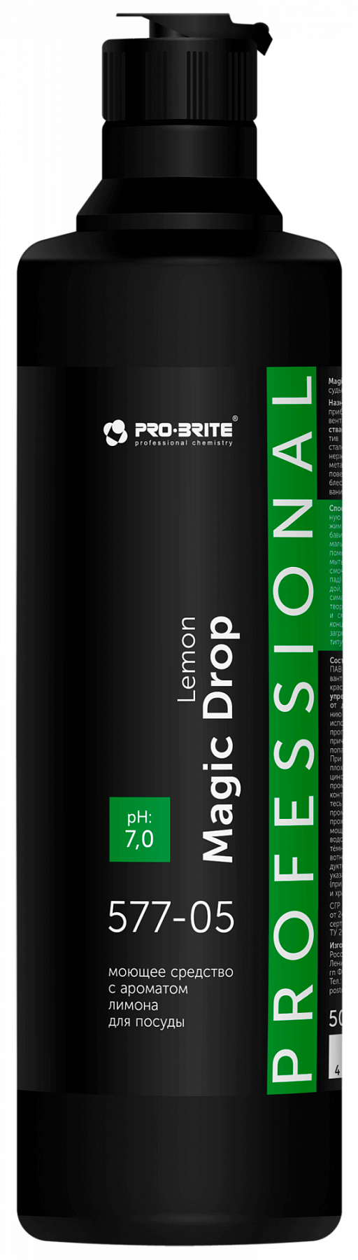 Pro-Brite: Magic Drop Lemon 0,5л/12шт Средство для мойки посуды с ароматом лимона