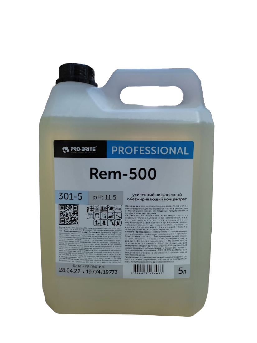 Pro-Brite: Rem-500 5л/4шт Усиленный низкопенный обезжиривающий концентрат