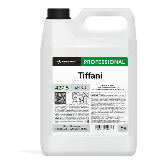 Pro-Brite: Tiffani 5л, 4шт/кор Жидкое мыло для пенного дозатора с дезенфицирующим эффектом