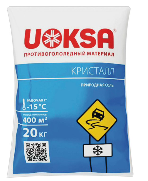 Реагент противогололедный 20 кг UOKSA КрИстал до -15С, природная соль, мешок