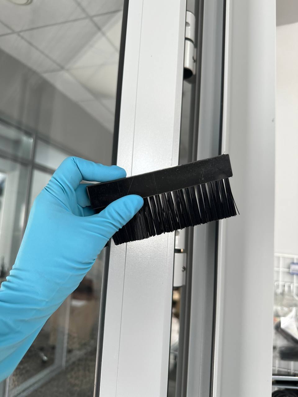 Щетка для выметания загрязнений из пазов стеклопакета.