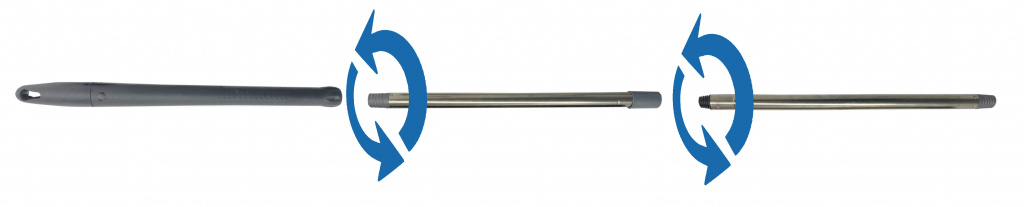 Рукоятка имеет распространенное крепление - "итальянская" резьба и подходит к большинству инструментов: щеток для пола, плоских швабр с резьбовым креплением или кентукки.