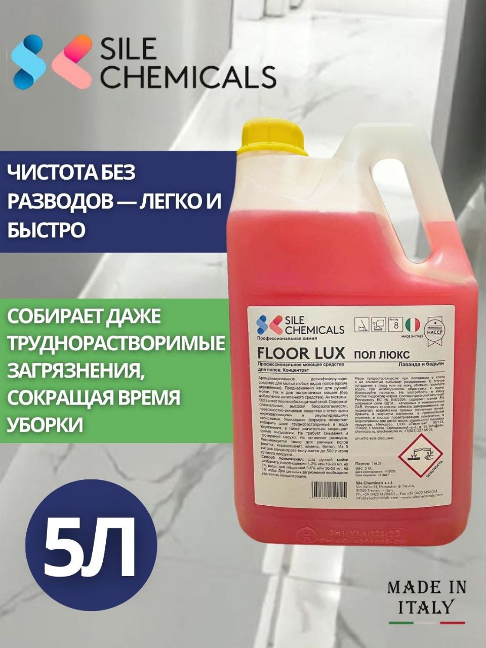 Sile Chemicals: Floor Lux Лаванда-Бадьян Моющее средство д/пола 5л./4шт.