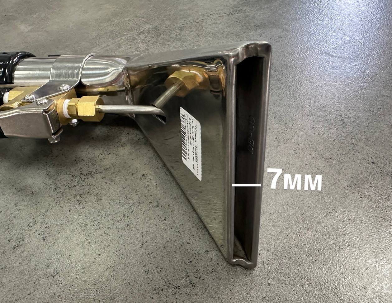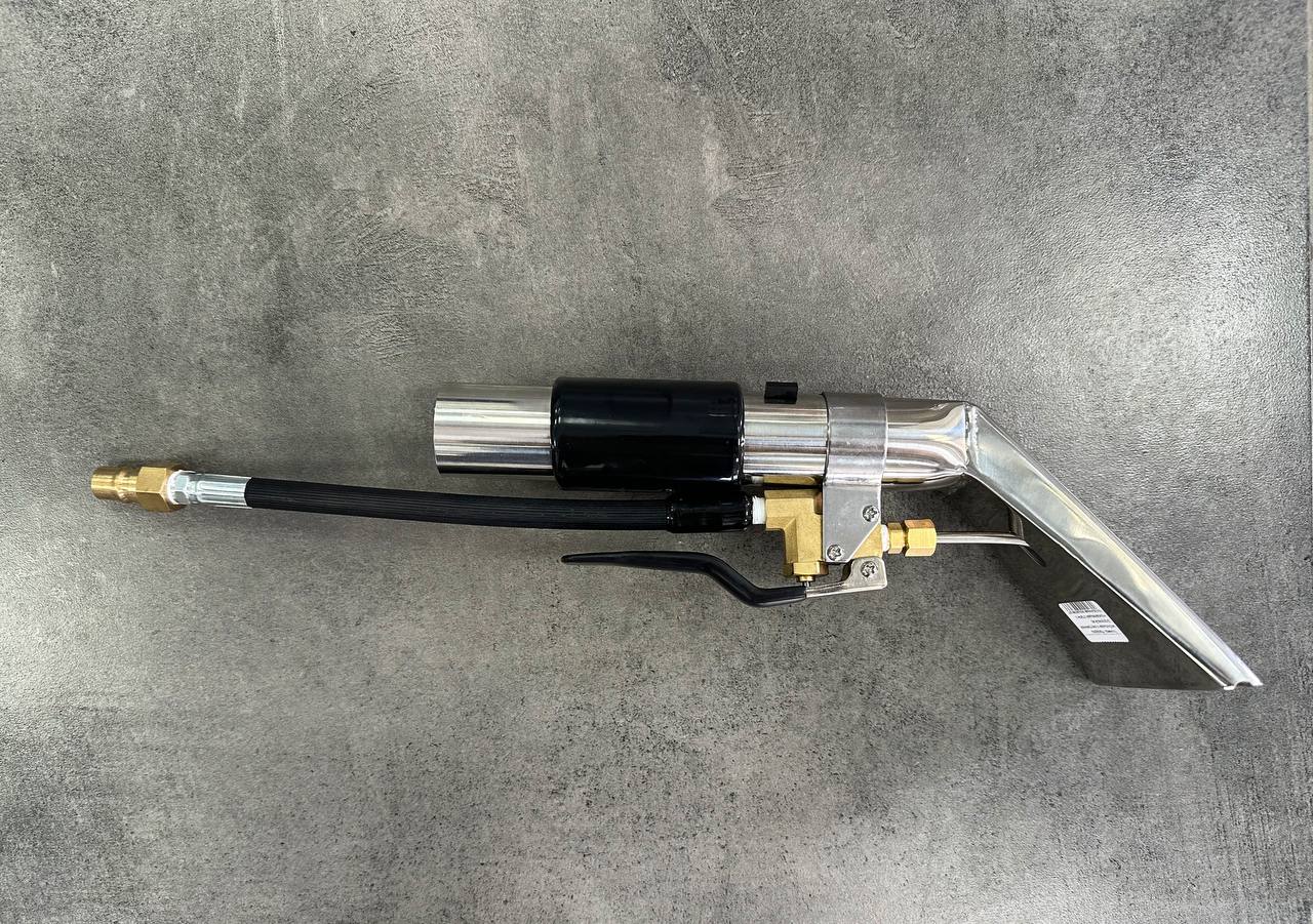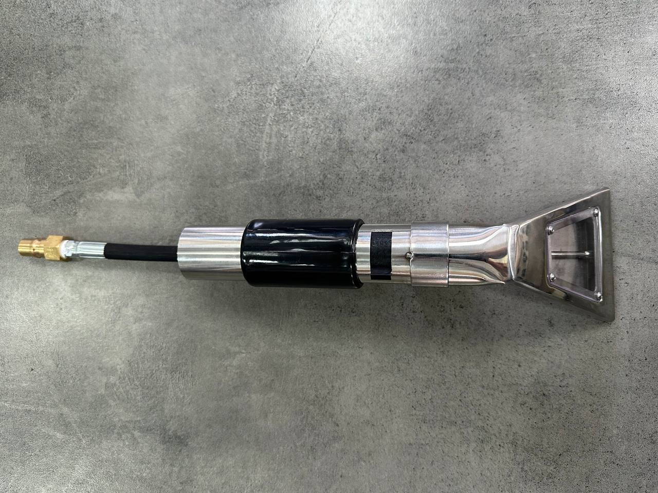 Насадка оснащена переключателем для регулировки силы всасываниия. Благодаря расположению форсунки внутри камеры данная насадка позволяет производить чистку вертикальных повехностей текстиля без разбрызгивания раствора по сторонам и вниз (мебель, полотолок авто, особенно актуальна для чистки флока).