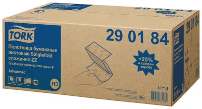 Tork: Листовые полотенца Singlefold сложения ZZ, 200л, 2сл. 23*23 см. 20/20 Advanced,Н3