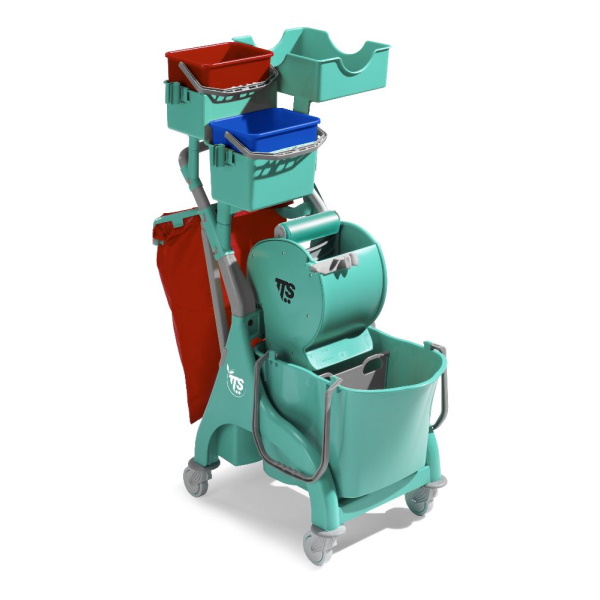 выполненная из ударопрочного пластика тележка на четырех прорезиненных колесах (диаметром 80 мм).