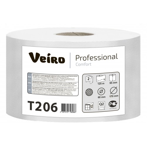 Veiro Professional Comfort туалетная бумага в больших рулонах туалетная бумага в больших рулонах - экономное решение для мест с большой проходимостью. Белизна бумаги составляет 55-60%. большой рулон требуется реже заправлят в диспенсер - экономия рабочего времени..