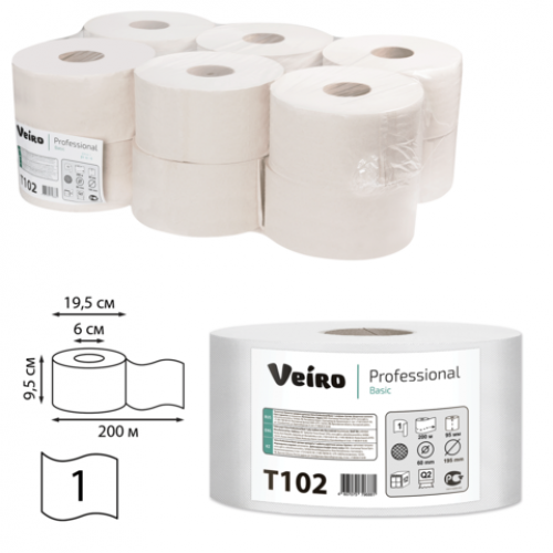 VEIRO: Туалетная бумага в больших рулонах, 1 слой, Veiro Professional Basic 12 рул/уп