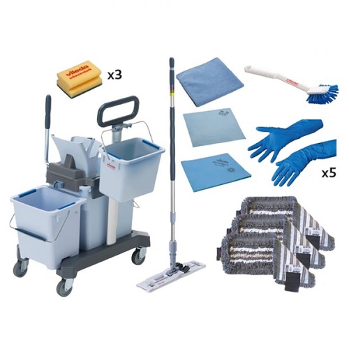 Расширенный комплект инвентаря для уборки на базе высокоэффективной двухведерной системы УльтраСпид Про. Предназначен для уборки внутри помещений с площадью до 500 кв. м. Уборка пола на базе ведер и швабр со сменными мопами, а также протирка и очистка вертикальных и горизонтальных поверхностей от ежедневных загрязнений.